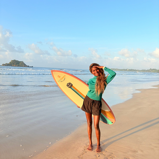Along the coast, the Surf Academy unfolded in close collaboration with Yaka Surf School, with additional training days at Ticket to Ride. The weekly sessions were coordinated by Ishi, whose journey captures what SeaSisters is all about. Once a participant herself, Ishi has grown into a SeaSisters leader in the water - and this off-season, she reached a major milestone by winning a national surf competition in Arugam Bay. To celebrate this moment, and everything it represents, she was gifted a SeaSisters surfboard, shaped and donated by No Shape Sri Lanka.